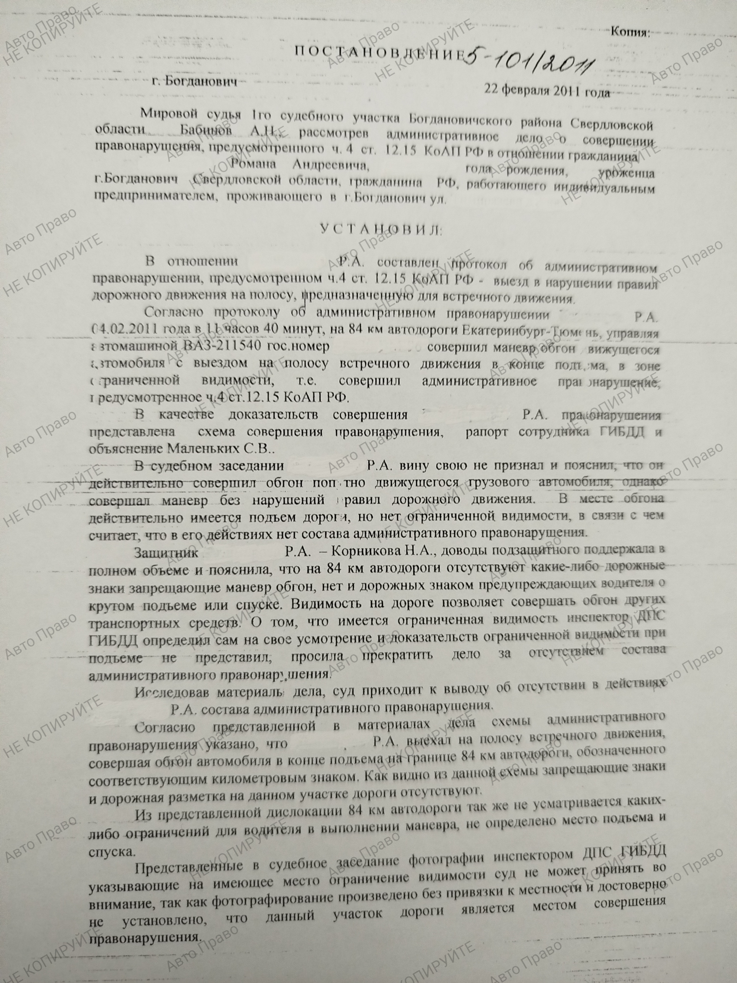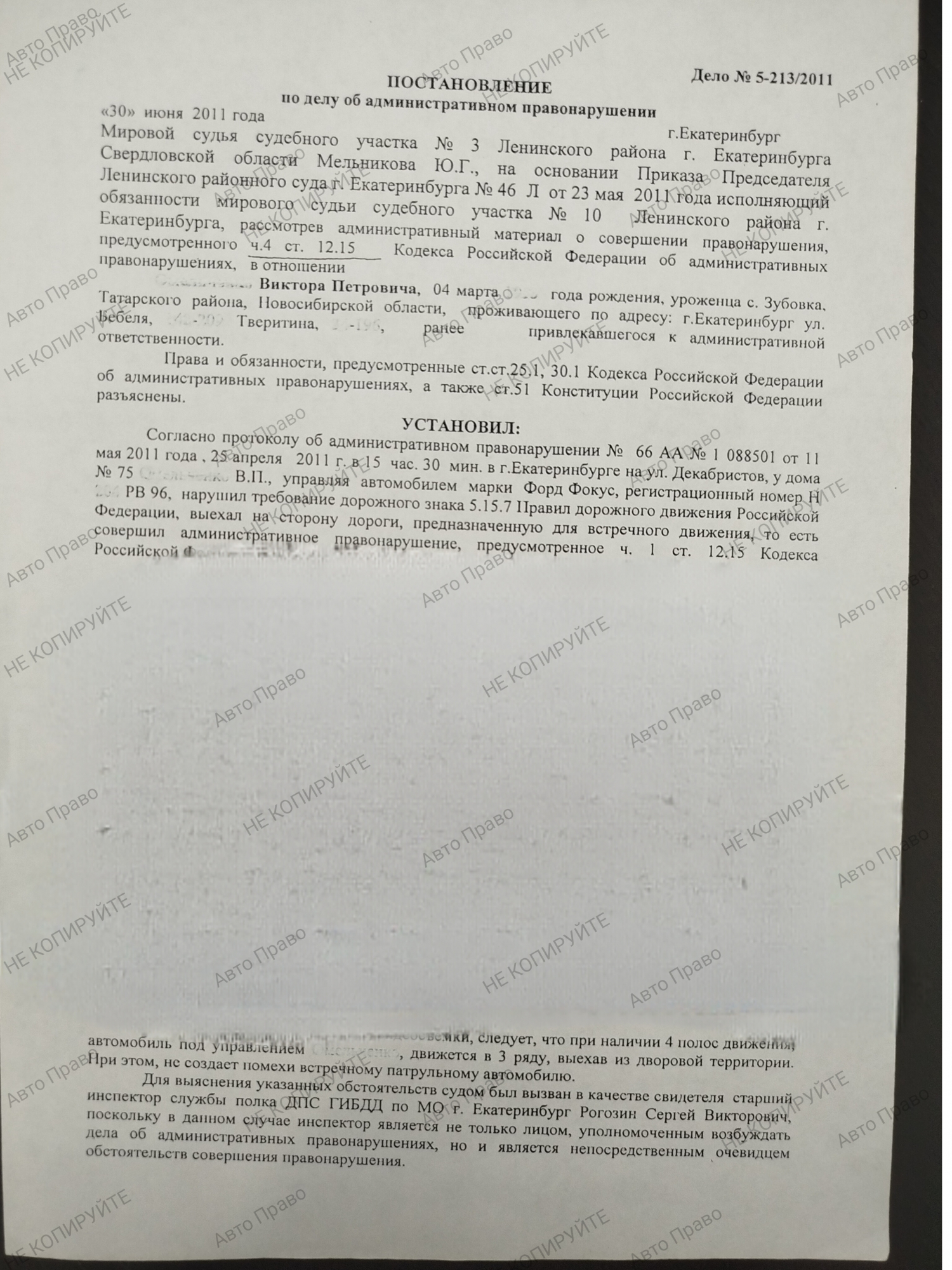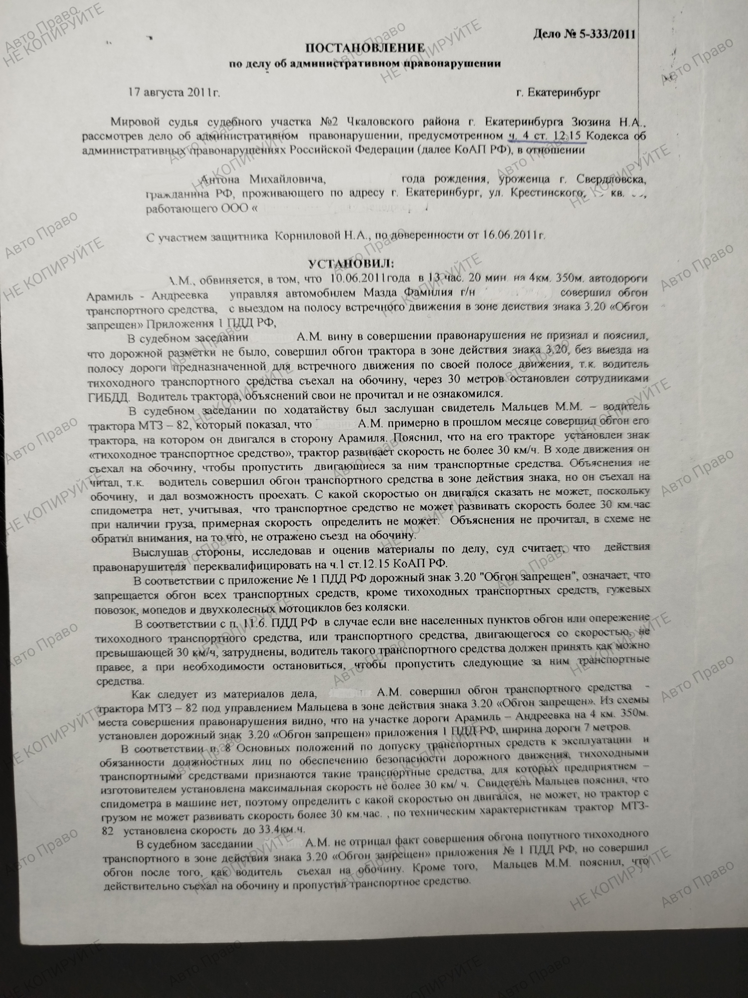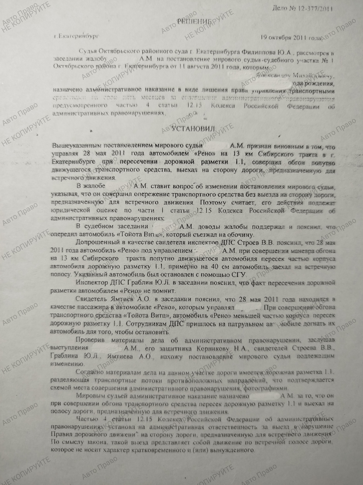 Услуги защитника по ч.4, 5 ст 12.15 КоАПРФ Выезд на полосу встречного движения в нарушение ПДД
